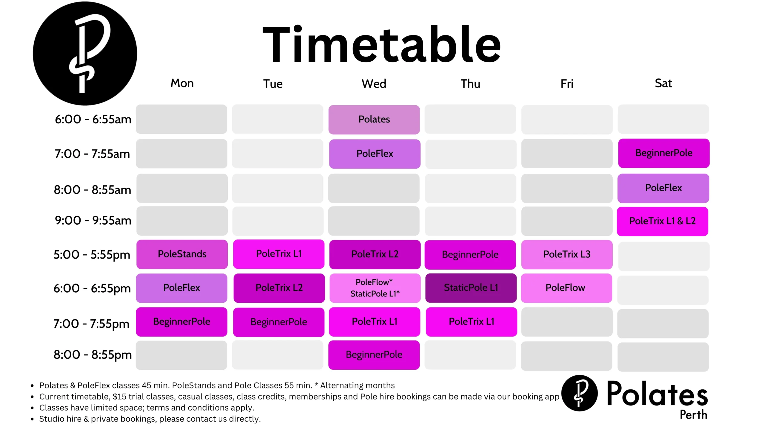 Polates Perth is a pole dancing, pole fitness and pilates studio in Osborne Park. Our range of pole dancing classes in Perth is suitable for all fitness and experience levels, from beginner to advanced, ensuring that there is something for everyone.